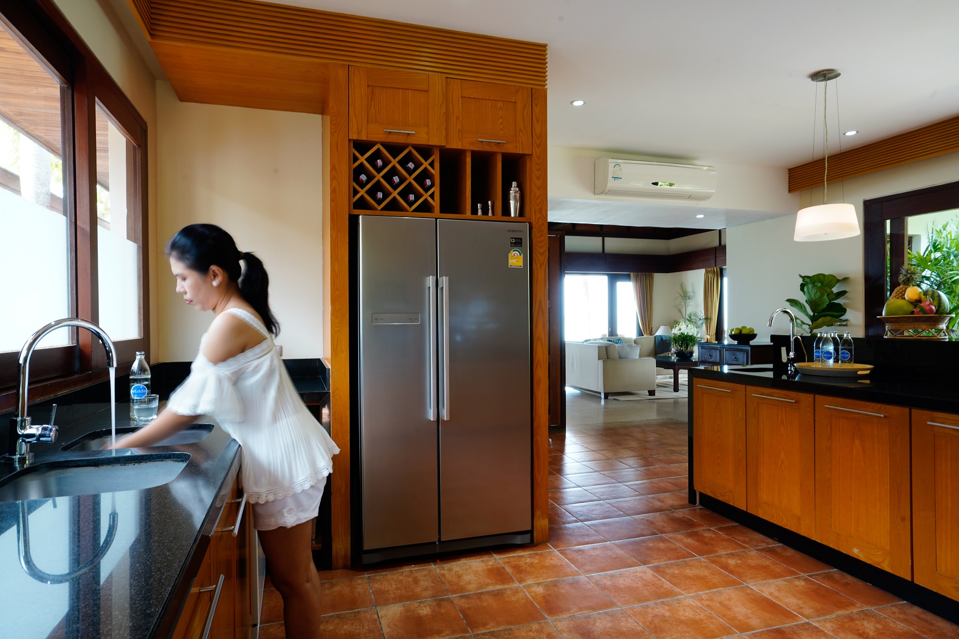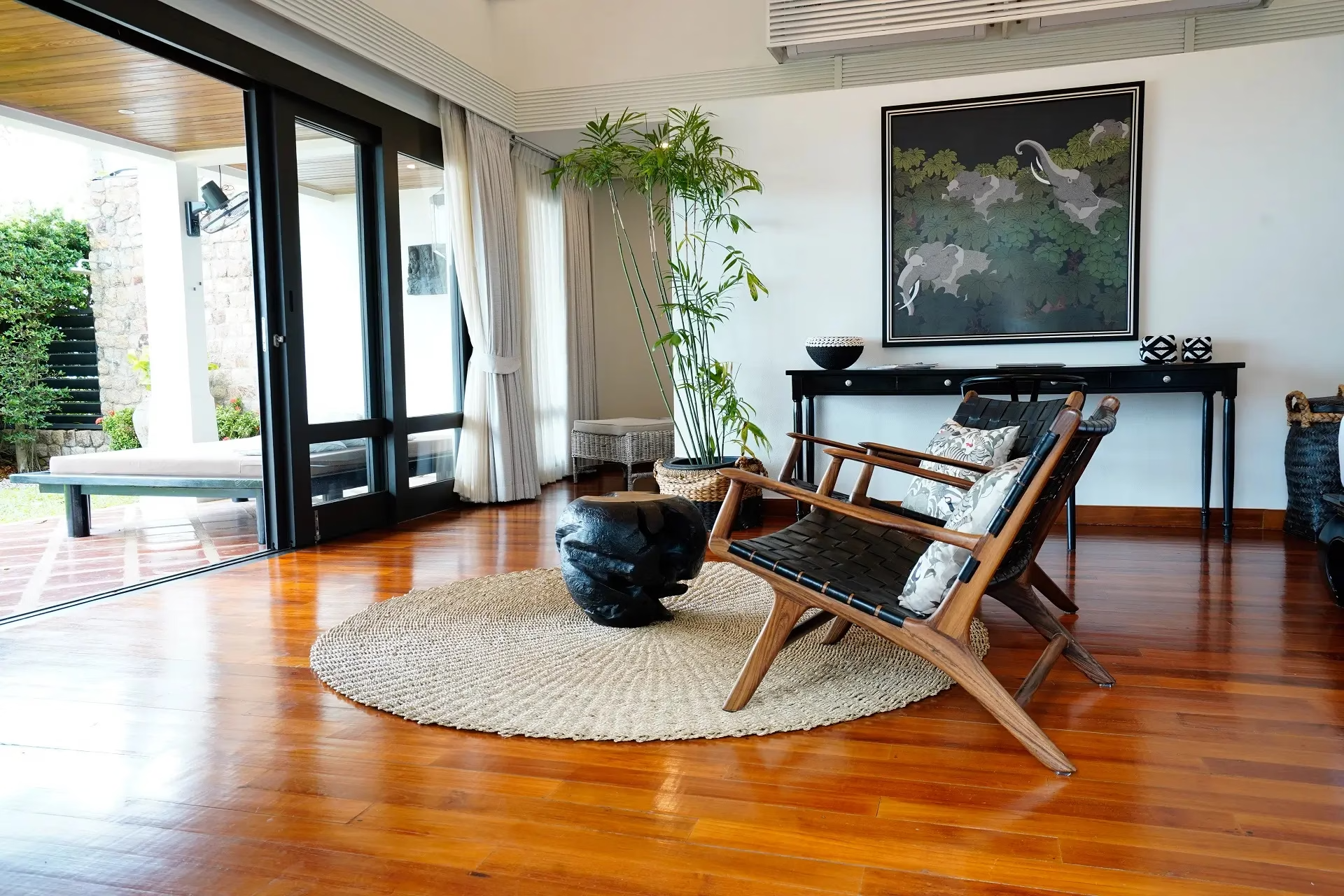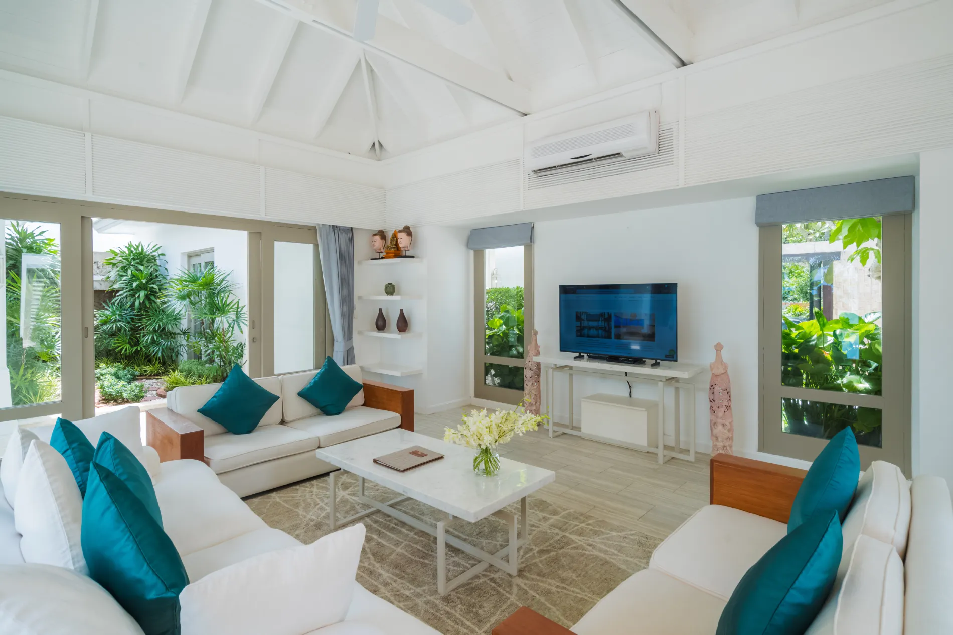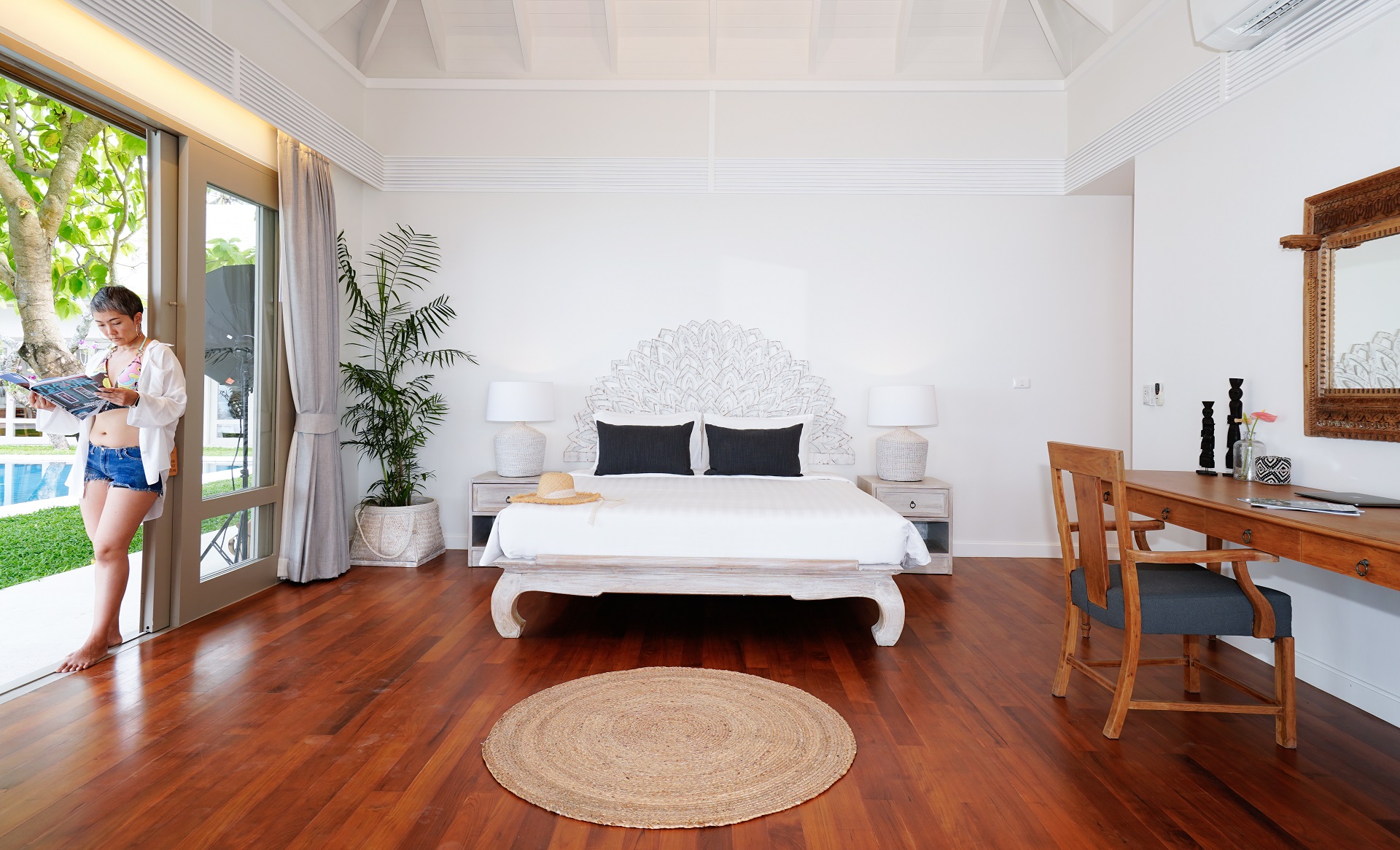 This stunning five-bedroom villa will transport you to Bali with its contemporary whitewashed interior, wood carvings and rattan furnishings. To make the most of the impressive 36 meters of beach frontage, each room is situated around the pool, while the spacious grounds feature tropical gardens, a shaded Thai sala and a large living area.$ 1,995 per night