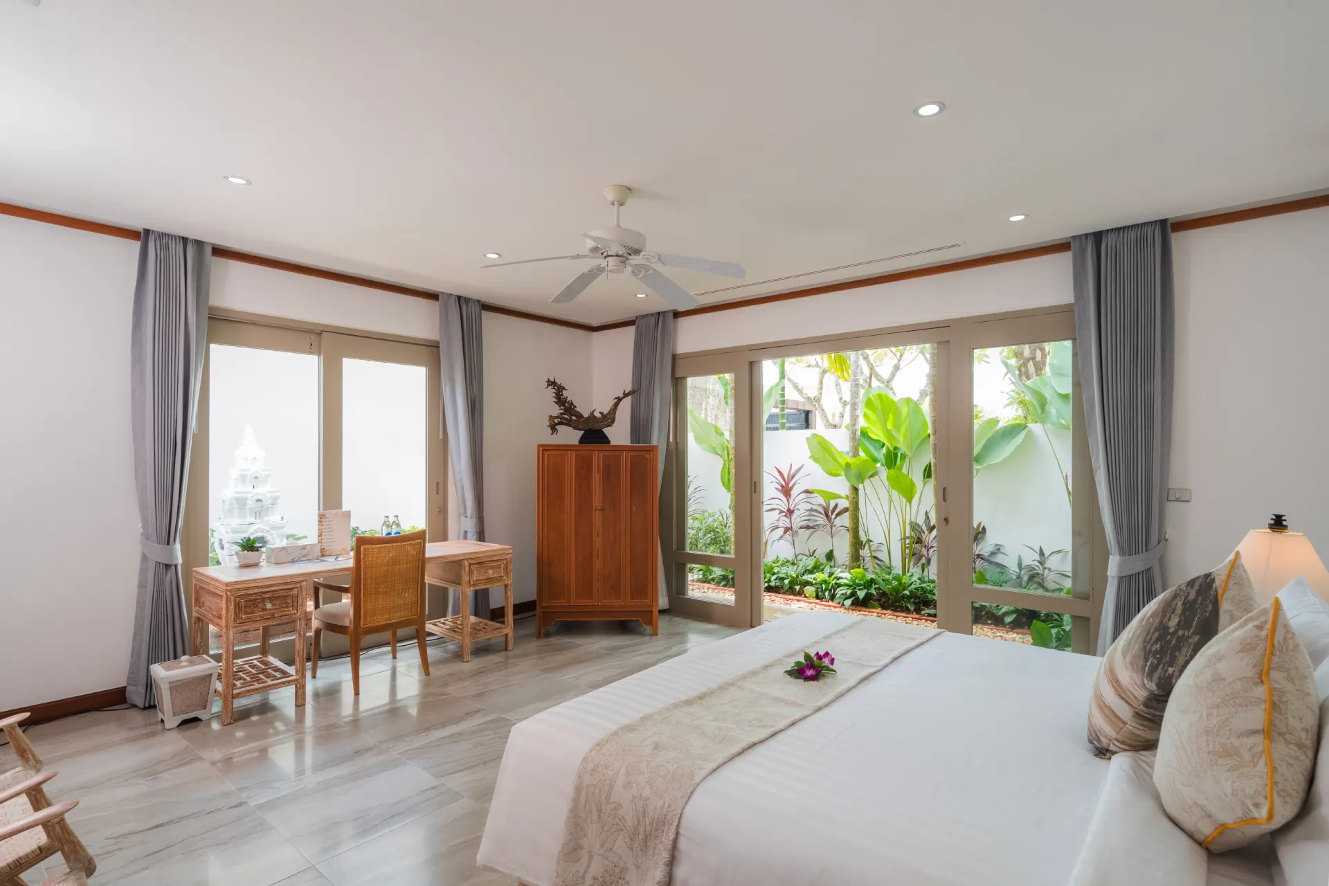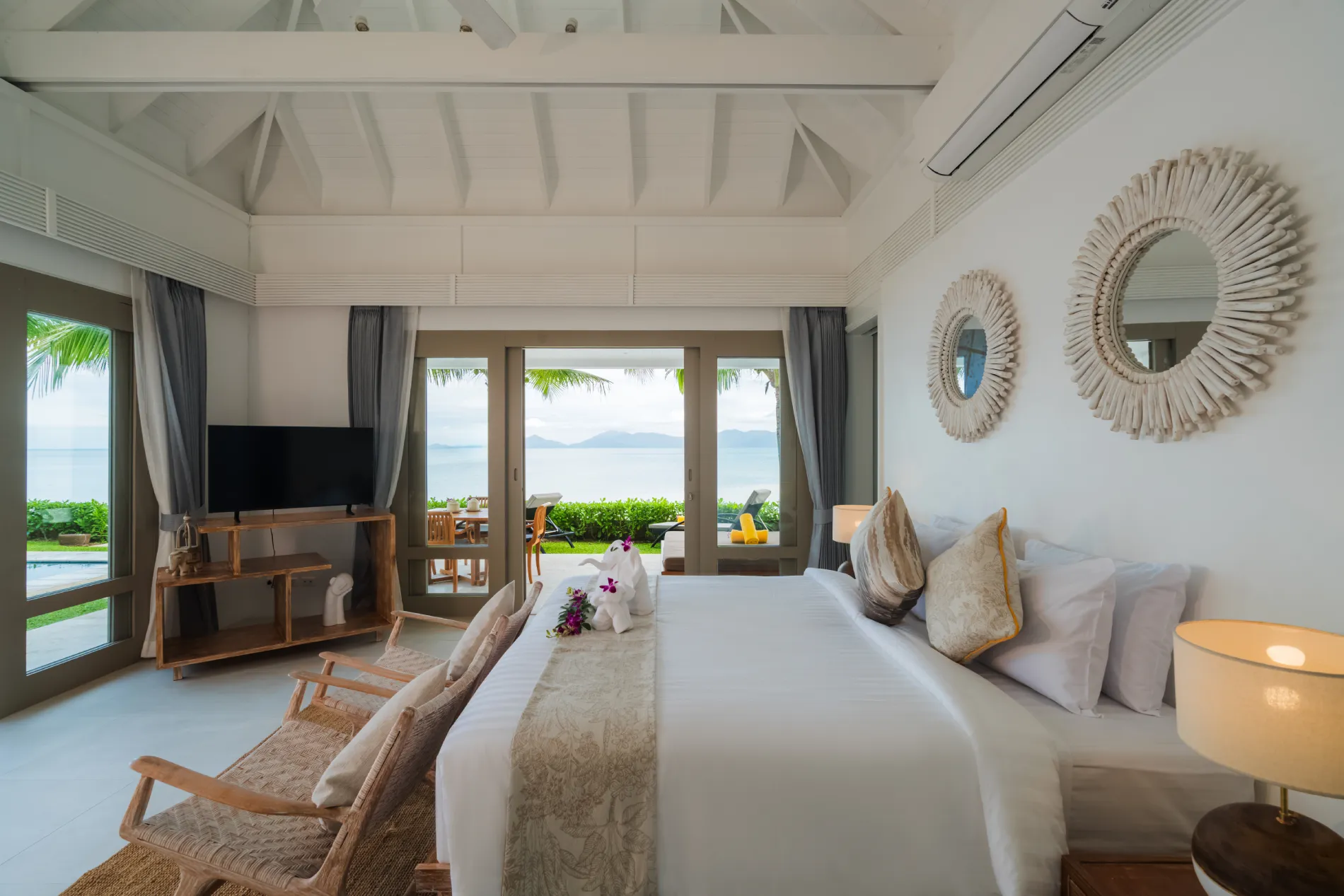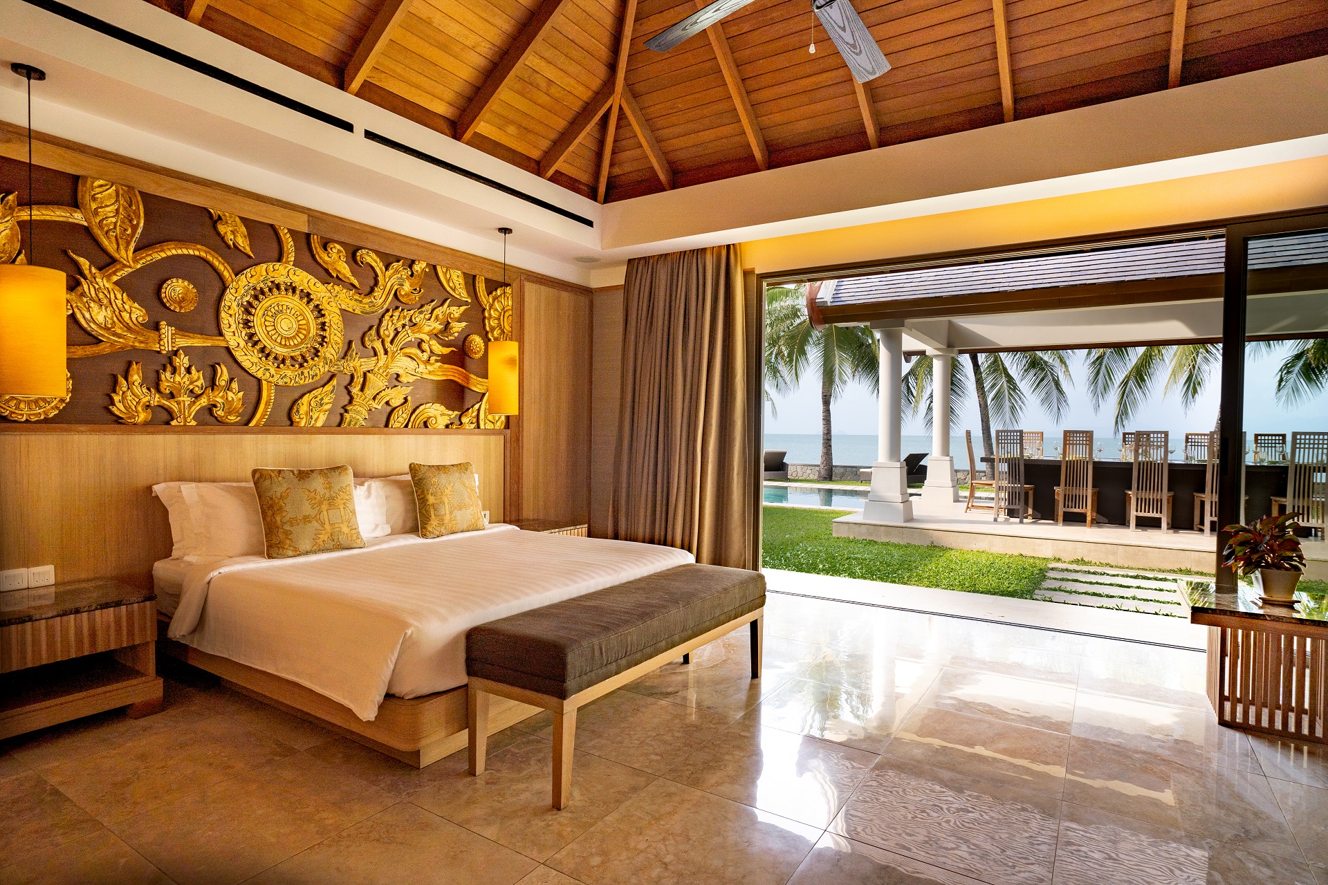 With distinct living and dining areas, this five-bedroom villa is ideal for families seeking separate spaces for entertaining and lounging. Cream walls, local carvings and an abundance of wood combine for a traditional Thai aesthetic, while the villa’s 27 metres of pristine beach frontage makes for impressive views.$ 1,862 per nightHibiscus