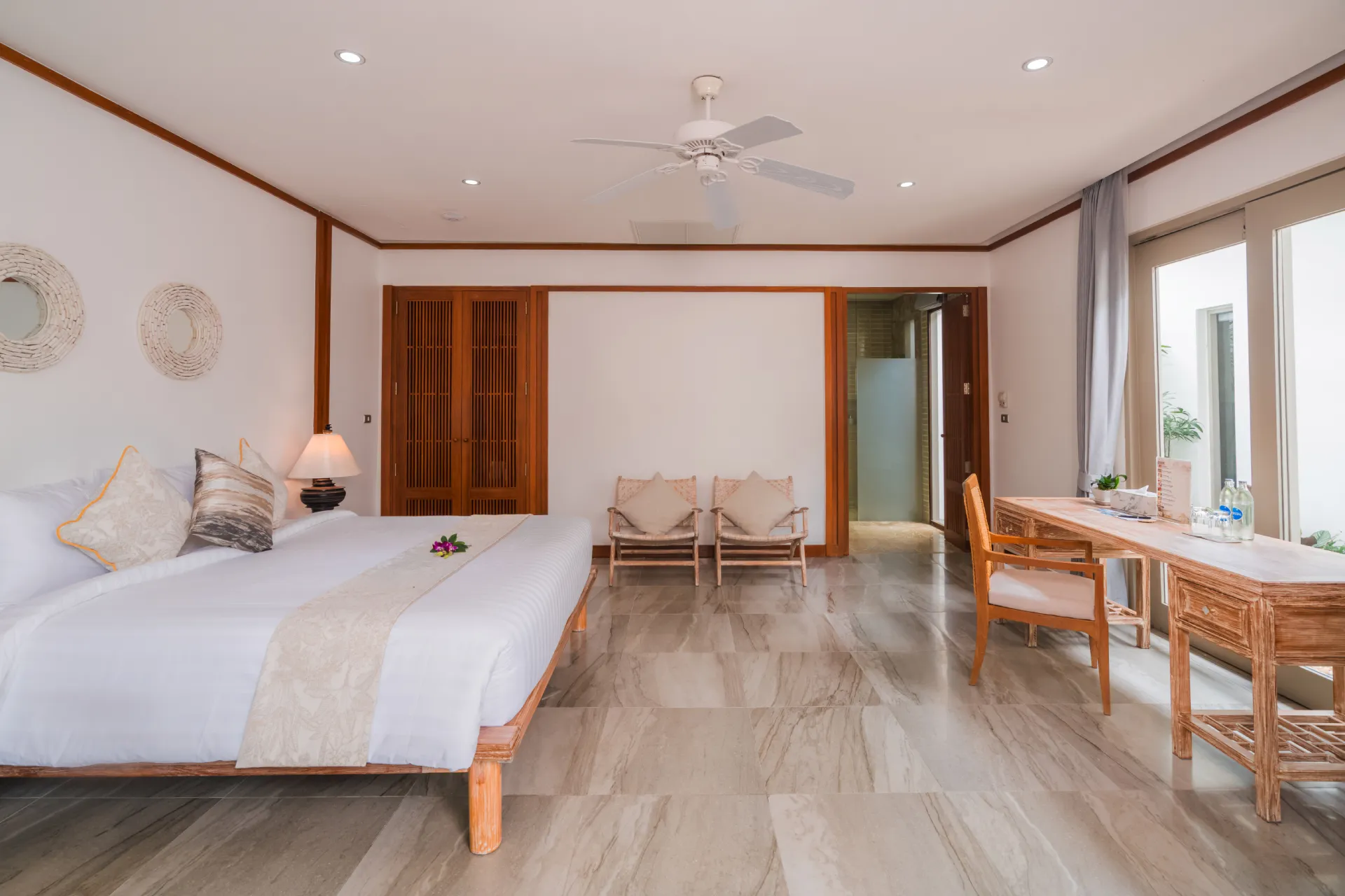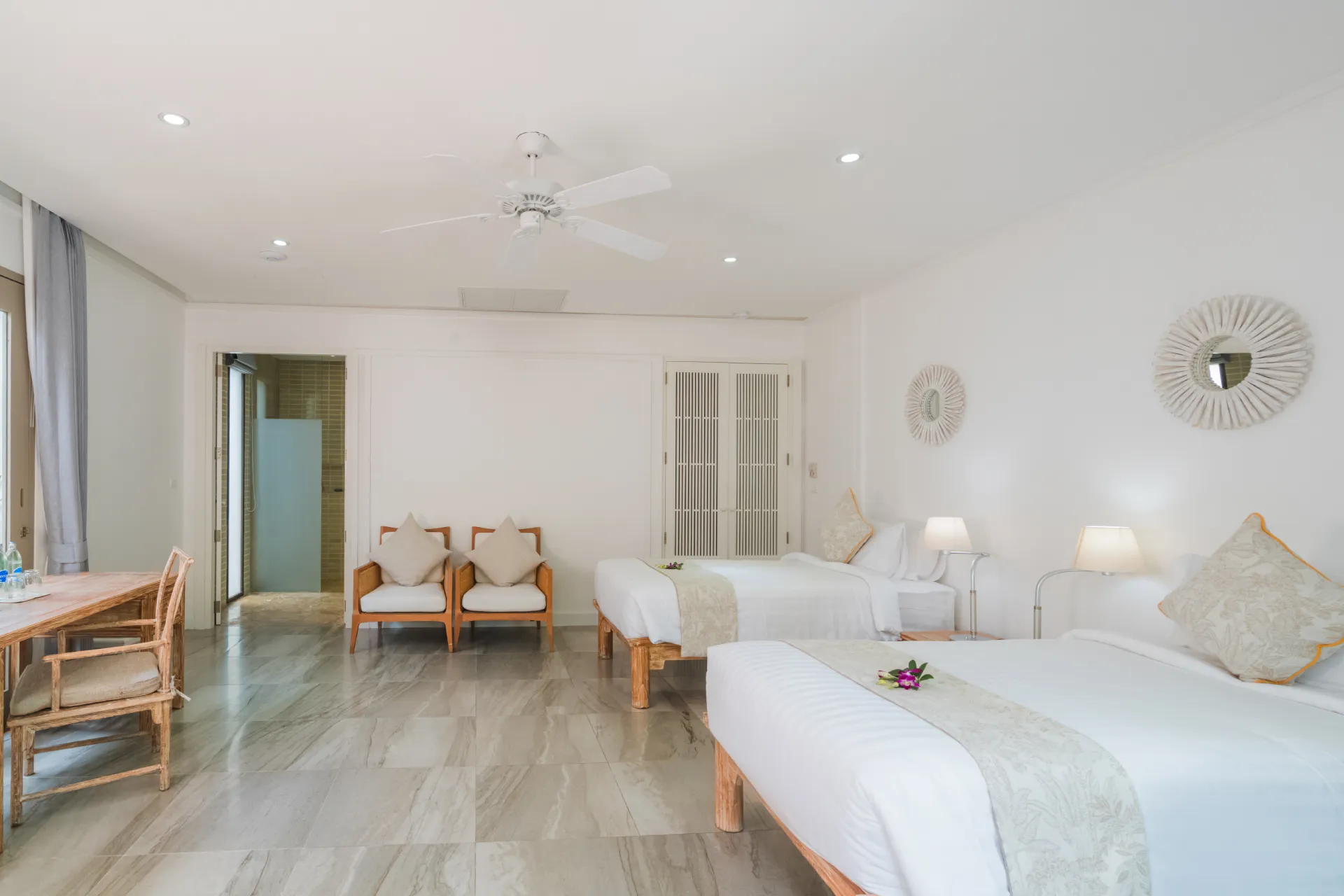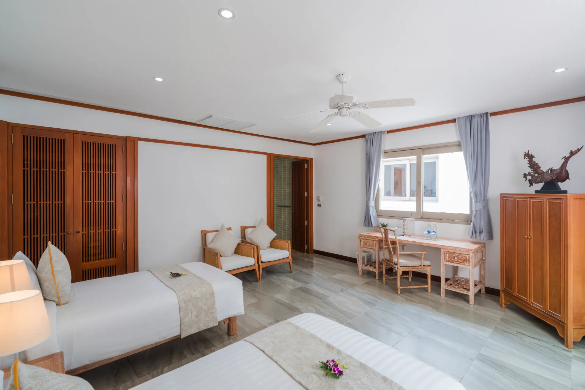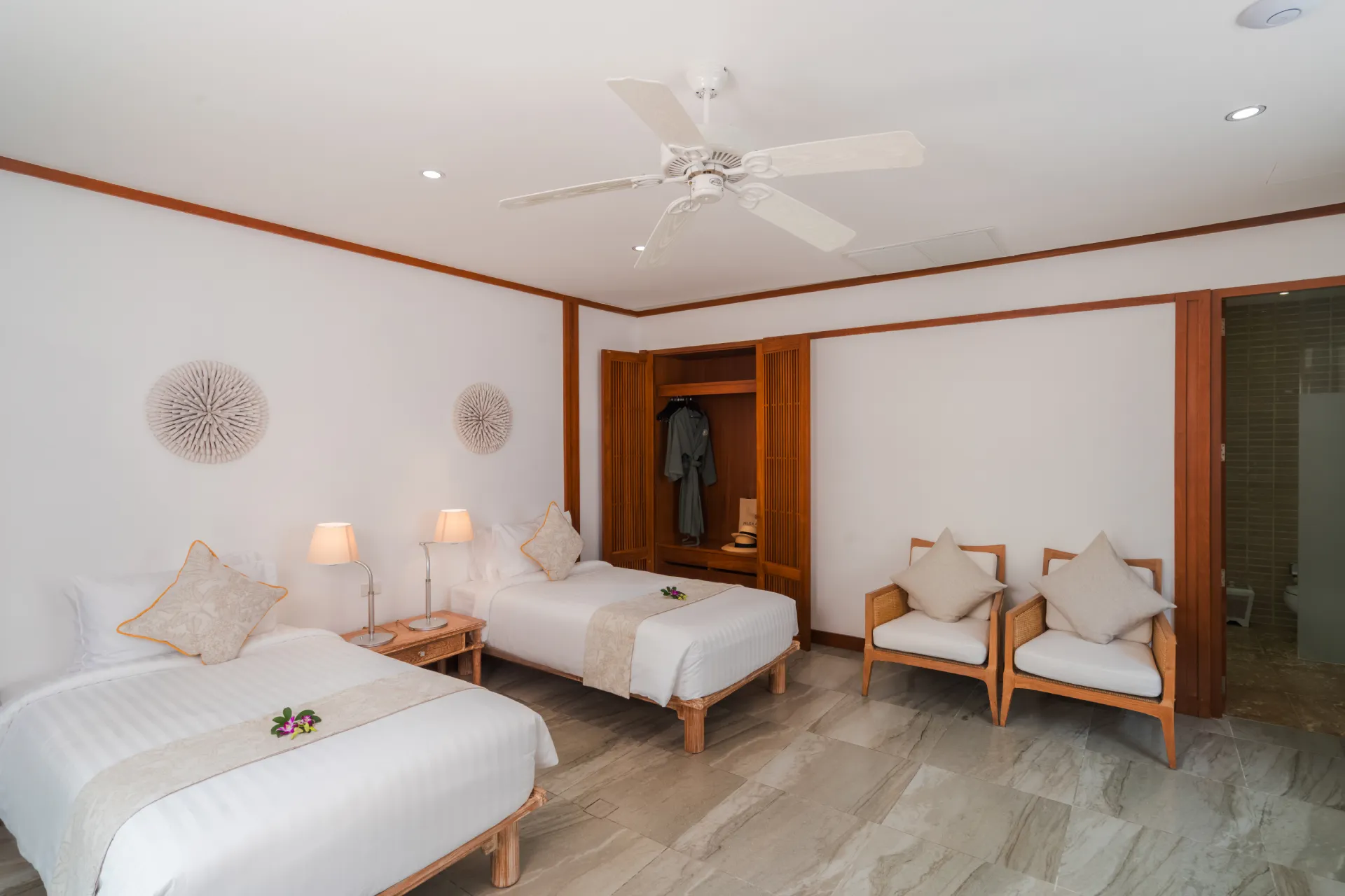 With distinct living and dining areas, this five-bedroom villa is ideal for families seeking separate spaces for entertaining and lounging. Cream walls, local carvings and an abundance of wood combine for a traditional Thai aesthetic, while the villa’s 27 metres of pristine beach frontage makes for impressive views.$ 1,862 per nightHibiscus