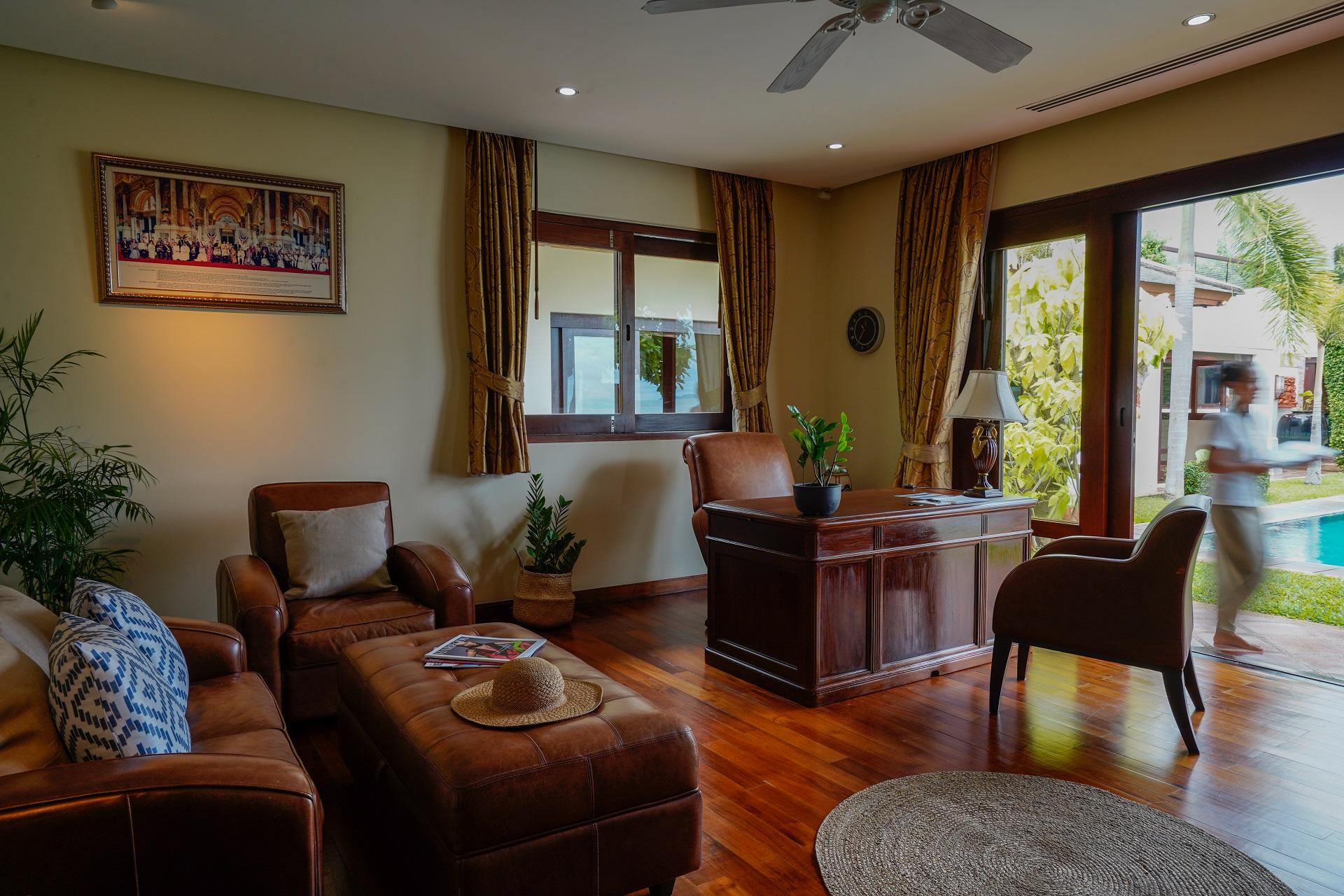 Villa Lotus is a six-bedroom haven offering six elegantly appointed bedrooms and seven luxurious bathrooms, thoughtfully designed to accommodate families and groups in comfort and style. At the heart of the villa lies a shared Central Pavilion—a seamless blend of indoor-outdoor living featuring a fully equipped kitchen, a spacious living area, and a dining space perfect for gathering with loved ones. The Master Suite features a serene bathroom with a bathtub, separate shower, and an open-air relaxation area, while Bedroom 2 impresses with its private steam room. Bedrooms 3–6 each include stylish ensuite bathrooms—some designed with duplex-style layouts for added flexibility and comfort.