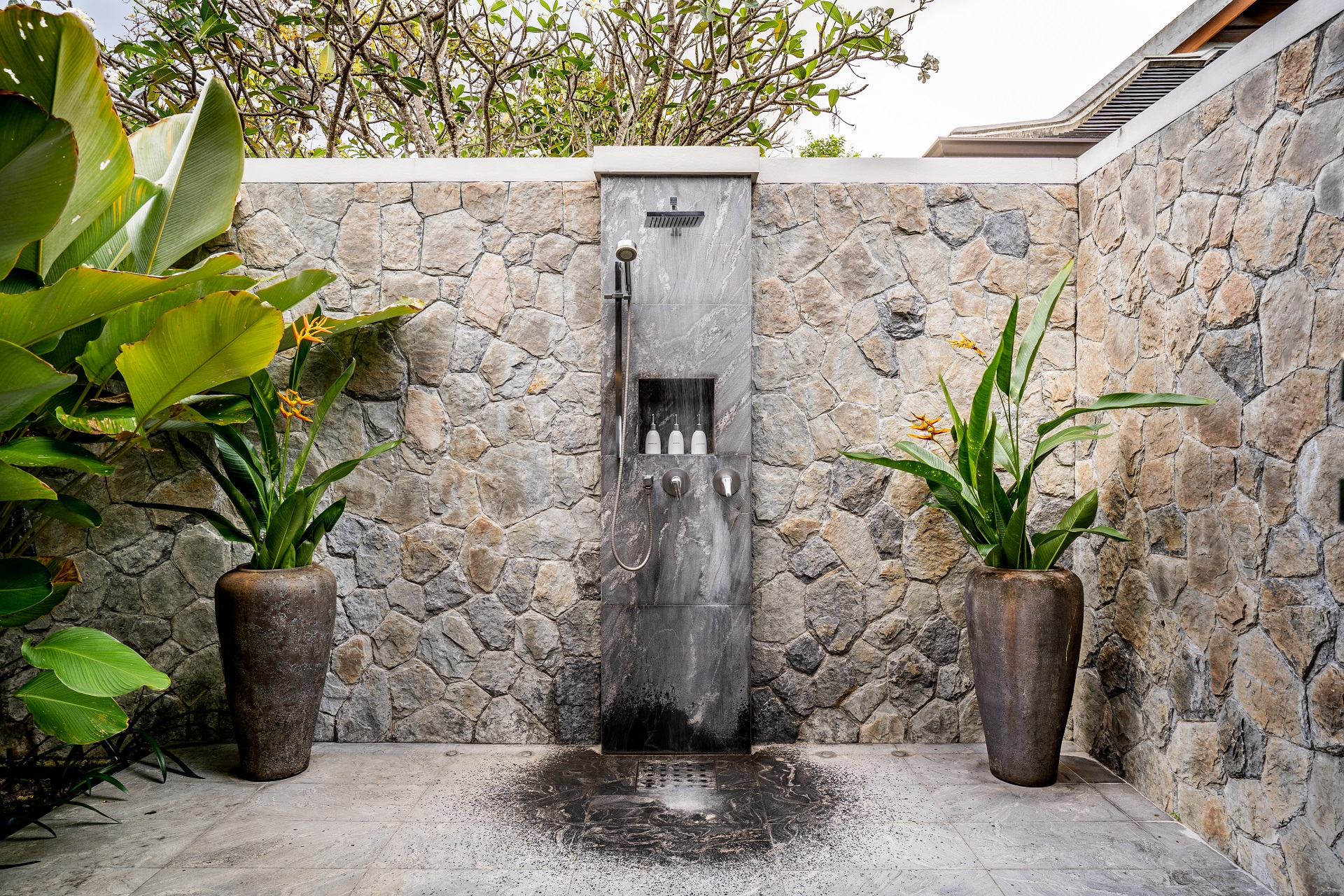 Villa Wayu offers seven elegantly appointed bedrooms and eight luxurious bathrooms, thoughtfully designed to accommodate families and groups in comfort and style. At the heart of the villa lies a shared Central Pavilion—a seamless blend of indoor-outdoor living featuring a fully equipped kitchen, a spacious living area, and a dining space perfect for gathering with loved ones. Comprising two identical seven-bedroom beachfront villas, the property showcases a harmonious architectural design and refined décor, artfully balancing expansive communal spaces with private retreats. Every bedroom features its own private ensuite bathroom with a rain shower for a refreshing escape, while Bedrooms 5 and 7 elevate the experience with tranquil outdoor bathtubs—inviting guests to unwind amidst nature in true tropical elegance.